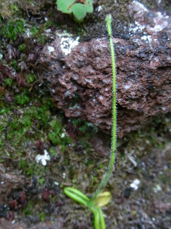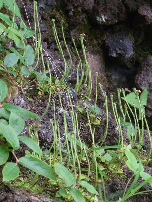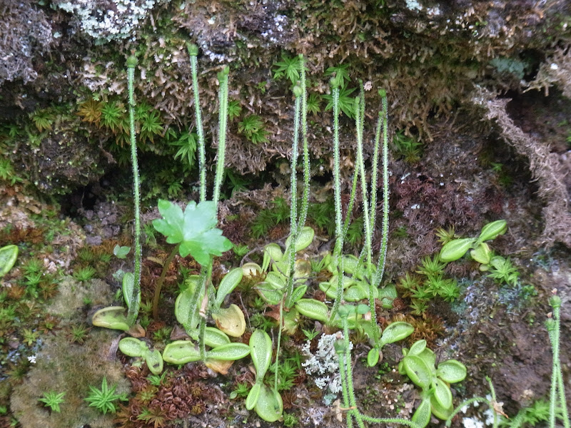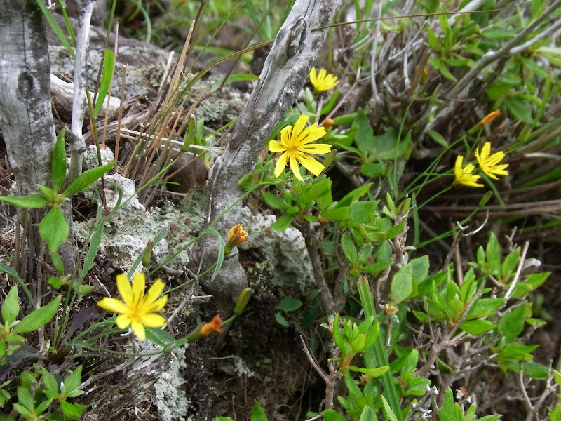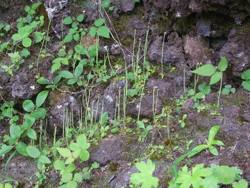 激しく降り出したら引き返すつもりでしたが、途中でパラパラと降った程度で、難なく自生地付近の岩場に到着。コメツツジでしょうか?小さなツツジが咲いていました。