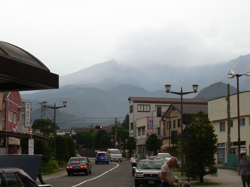 天気予報は「曇りのち雨」。駅前から望む山々は雲に覆われています。降られるのは覚悟の上でやってきましたが…。行ける所まで行ってみましょう。